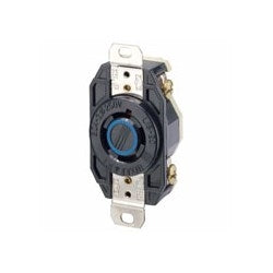 The Leviton 2420 is a locking receptacle designed for industrial use, rated for twenty amps and two hundred fifty volts. It features a three-phase flush mounting design. This receptacle integrates superior materials for reliability and performance in severe conditions. The device adheres to strict standards for safety and functionality.