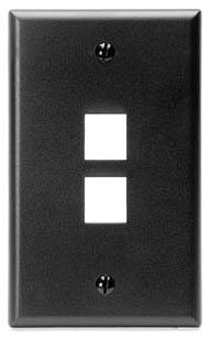 The Leviton 41080-2EP is a single-gang QuickPort wall plate designed for multimedia applications. It features two ports, making it suitable for various networking needs. The wall plate is made from durable plastic and has a sleek black finish. It can accept QuickPort connectors, allowing for flexibility in port configuration.