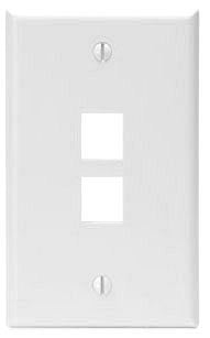 The Leviton 41080-2WP is a single-gang QuickPort wall plate designed for multimedia applications. This wall plate accommodates two ports and is suitable for various installations. It is crafted from durable plastic and features a flush mount design to ensure a clean and professional appearance.