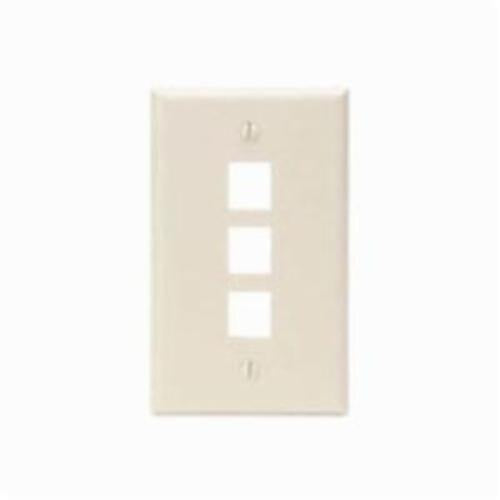 Leviton 41080-3TP is a single-gang QuickPort wall plate designed for multimedia applications. This wall plate can hold three QuickPort connectors, making it suitable for various networking setups. It is ideal for flush mounting where a streamlined look is required. This wall plate is made from durable plastic and is available in light almond color.
