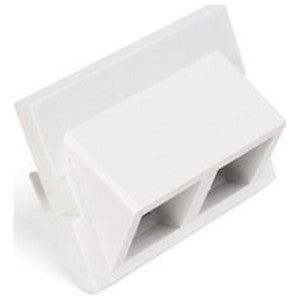 The Leviton 41294-2QW is a two-port angled MOS QuickPort adapter designed to fit seamlessly into MOS wallplates and surface-mount housings. This unit measures 1.5 units high and supports all QuickPort connectors, making it versatile for various applications.