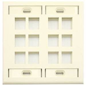 The Leviton 42080-12I is a multimedia wallplate designed for standard two-gang applications. This wallplate fits QuickPort snap-in modules, making it ideal for multimedia station setups. It supports configurations of up to twelve ports, providing flexibility in various commercial installations.