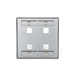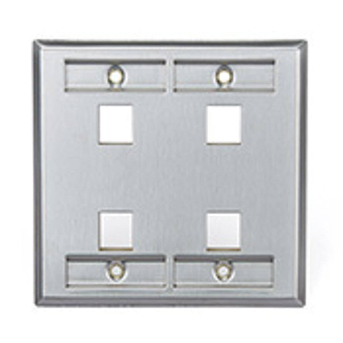 Leviton 43080-2L4 is a dual gang wall plate designed for use with QuickPort connectors. This wall plate supports four ports and features ID windows for organization. It fits standard NEMA electrical boxes and allows for individual port configurability, making it suitable for both commercial and residential applications.