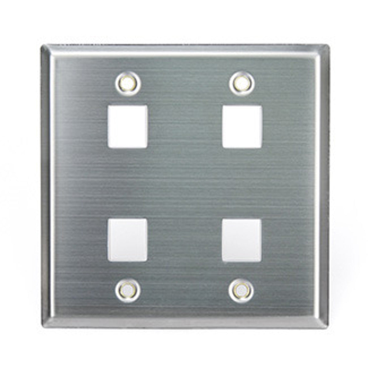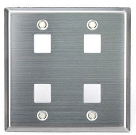 Leviton 43080-2S4 is a stainless steel wall plate designed for dual gang applications. This wall plate features four ports and is compatible with QuickPort snap-in connectors and adapters. It supports both commercial and residential installations, providing flexibility and ease of use.