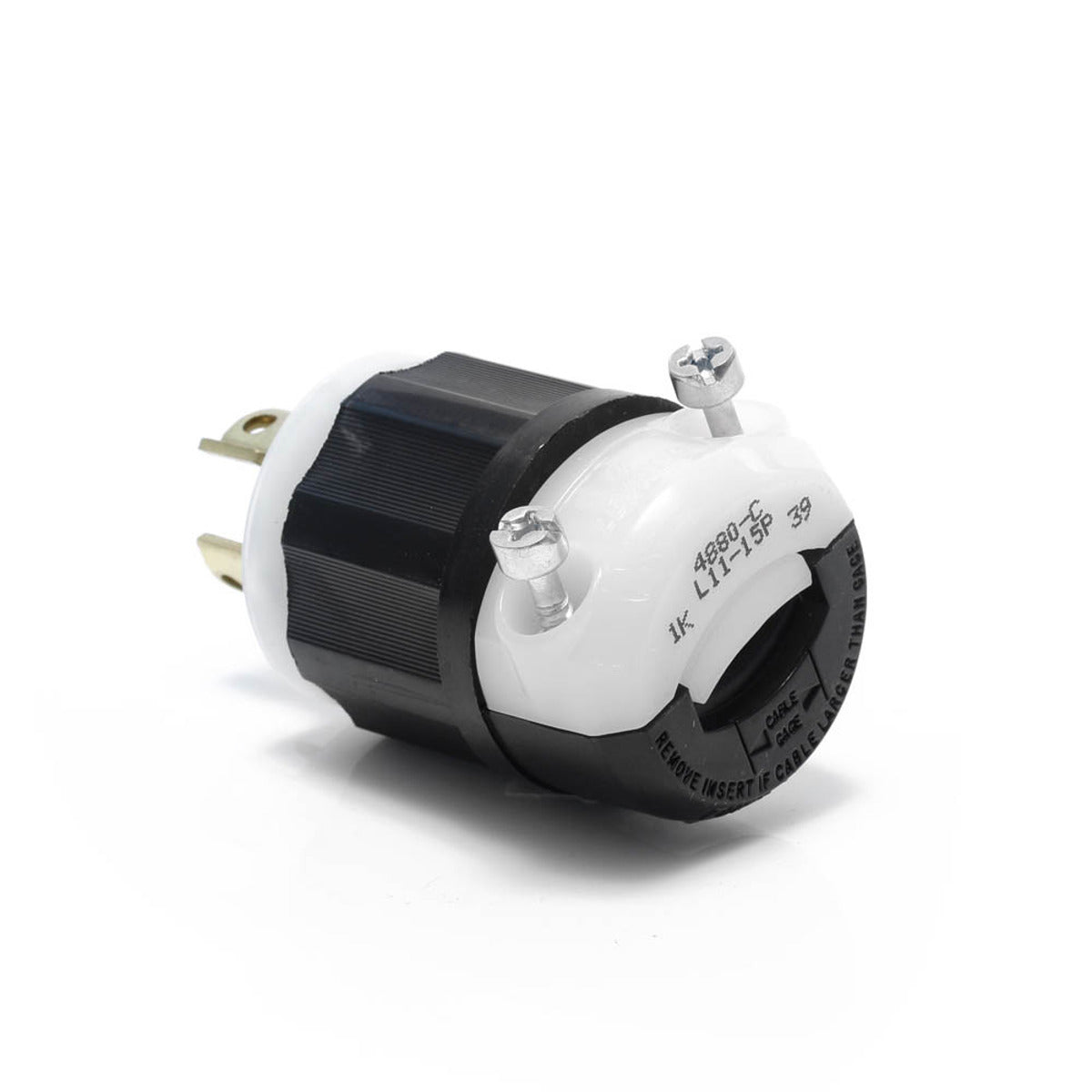 Leviton 4880-C Locking Plug is designed for industrial applications. It is a non-grounding cable mount plug rated for 250 volts and 15 amps with a three-pole and three-wire configuration. The plug features a NEMA L11-15P rating and is suitable for use with cord diameters ranging from 0.24 to 0.7 inches. The nylon construction enhances durability and grip in tough environments.
