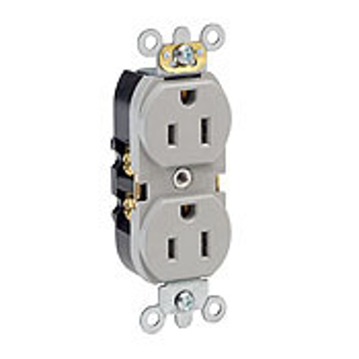 The receptacle features self-grounding capabilities and is engineered for fine appearance and functionality in institutional environments.