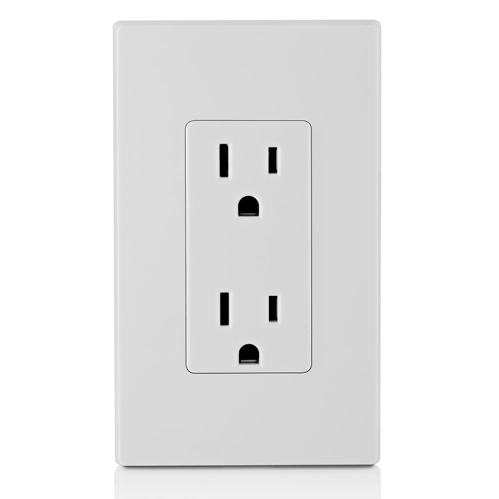Leviton 5325-SW is a duplex receptacle designed for residential use. This receptacle supports fifteen amperes and one hundred twenty-five volts. It ensures a safe connection due to its self-grounding feature.