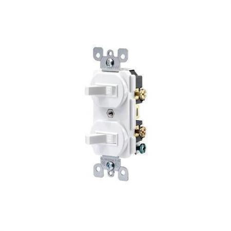The Leviton 5334-W is a 20 Amp, 120/277 Volt duplex style combination switch designed for both residential and commercial applications. This switch features a unique single-pole configuration allowing for versatile installation options. It is a non-grounding device that connects side wired for easy installation.