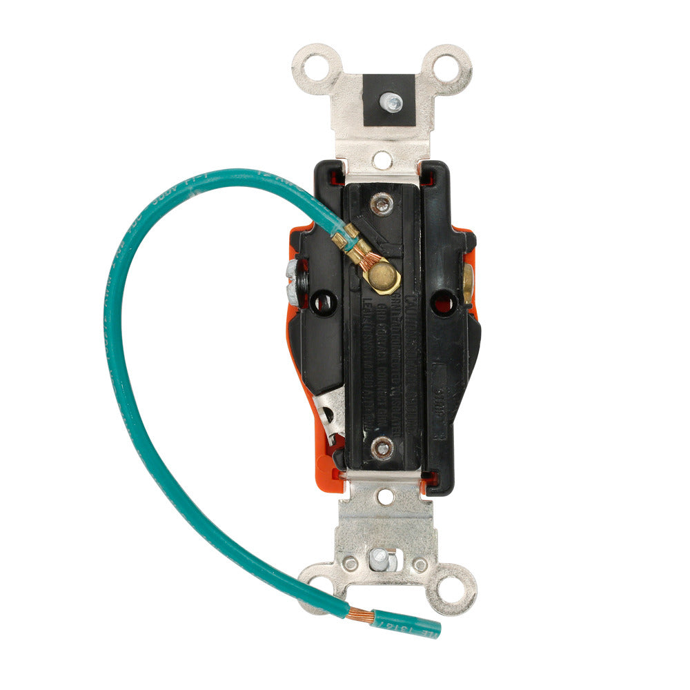 The Leviton 5361-IG is a heavy-duty straight blade receptacle designed for commercial use. It is rated for twenty amps and one hundred twenty-five volts. The isolated ground feature provides enhanced safety for sensitive equipment. Installation is straightforward with back and side wiring options, suitable for various wiring configurations.
