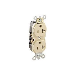 Leviton 5362-SI is a heavy-duty duplex receptacle designed for industrial applications. This model is rated for 20 amps and operates at 125 volts. It features a self-grounding design and comes in a contractor pack containing ten units. The receptacle is built from thermoplastic material for durability in demanding environments.