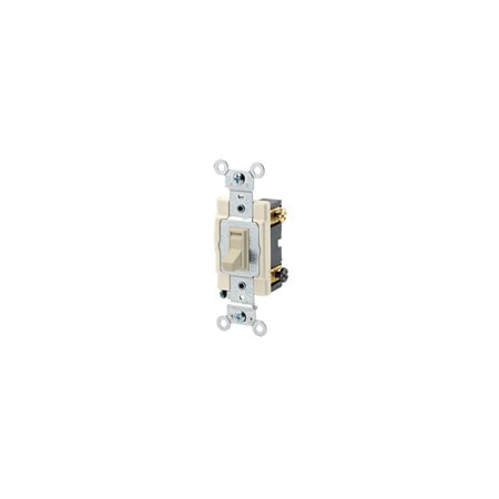 The Leviton 54523-2I is a 3-way framed AC quiet toggle switch that operates at 120/277 VAC. Designed by Leviton, it provides 20 Amp power rating and comes in an ivory color. The switch is suitable for commercial use, making it ideal for various applications at municipal facilities, schools, hospitals, and other commercial settings.