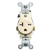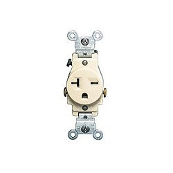 Leviton 5821-I is a 20 Amp, 250 Volt single receptacle designed for commercial use. This device is suitable for installation in various settings including hotels, schools, and hospitals. The receptacle features a narrow body design and is side wired.