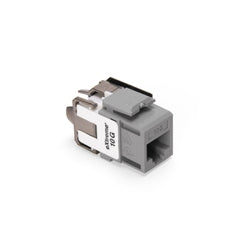 The Leviton 6110G-RG6 is an eXtreme 10G QuickPort Connector designed for UTP Category 6A applications. This connector features a 110 style termination and is compatible with universal wiring standards. Its grey color provides a neutral look suitable for various installations.