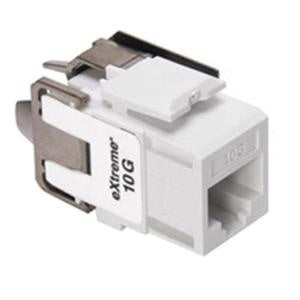 The Leviton 6110G-RW6 eXtreme Cat 6A QuickPort Jack is a channel-rated connector designed for high-performance network installation. This jack supports data transmission for voice, video, and data applications over UTP, ensuring reliable connections within telecommunications systems.