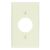 The Leviton 78004 is a one-gang single device receptacle wallplate designed for standard applications. This product is made of thermoset plastic and features a light almond finish. Its dimensions are four and one-half inches in height by two and three-quarter inches in width, with a cutout for a single receptacle.