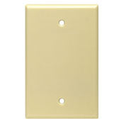The Leviton 80514-I blank wallplate is designed for standard applications. This 1-gang midway size wallplate is made of durable thermoset plastic and comes in ivory color. It is ideal for covering unused outlets or any openings in walls.