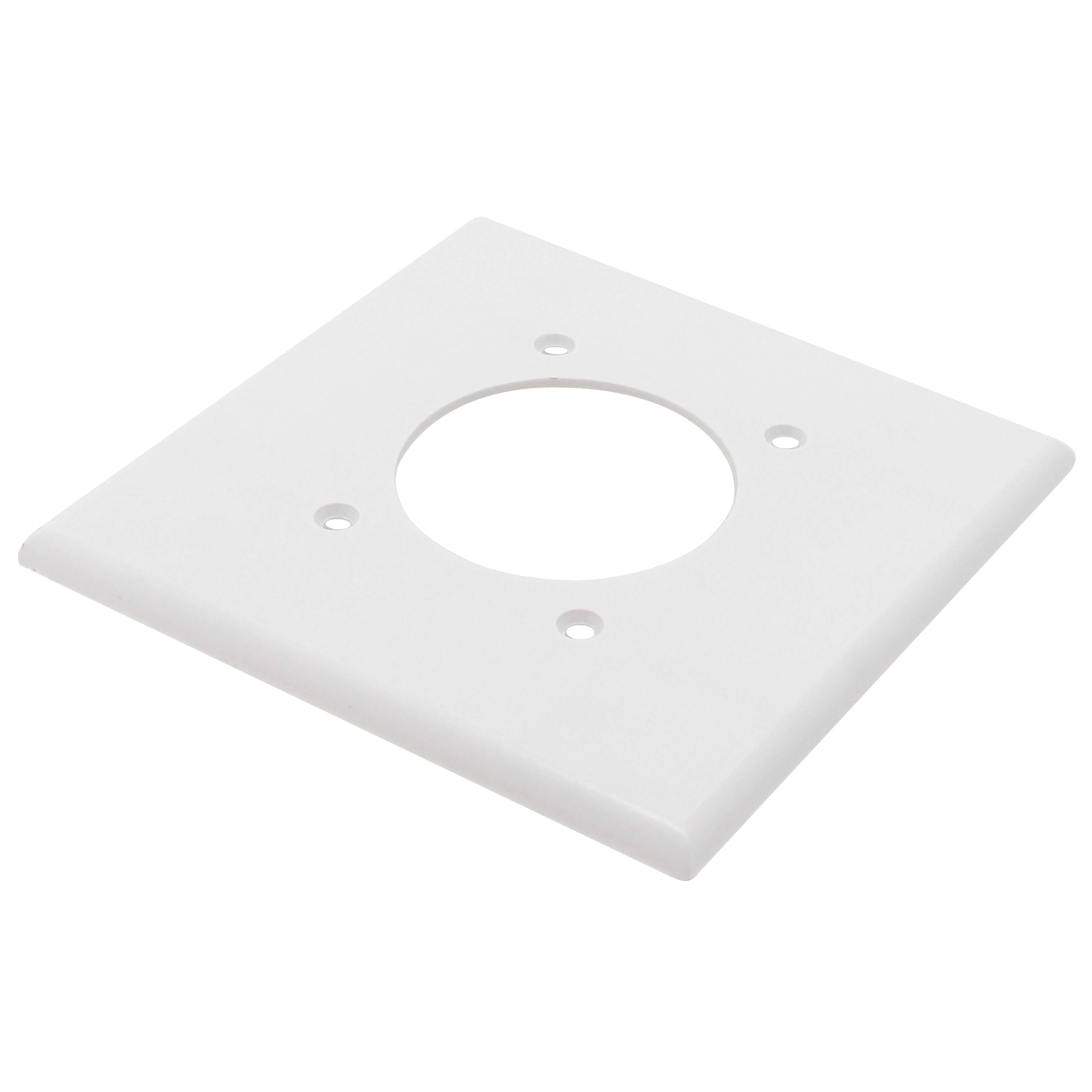 The Leviton 80526-W is a 2-gang flush mount wallplate designed for a 2.15-inch diameter receptacle. This standard size wallplate is made from thermoset material and comes in white. It fits well in both residential and commercial applications, offering a clean and functional look.