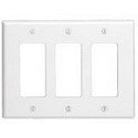 The Leviton 80611-W is a three-gang Decora wallplate designed for GFCI devices and standard switches. Made from thermoset material, this wallplate is white and comes in a midway size that provides more coverage compared to standard wallplates.