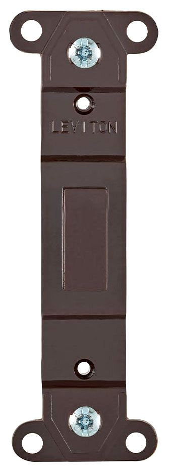The Leviton 80700 is a wallplate adapter designed for a toggle switch or a blank toggle without a hole. This product is suitable for surface mounting and made of durable plastic with a brown finish.