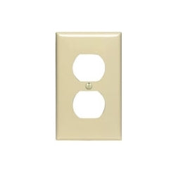 The Leviton 80703-I is a 1-gang duplex device receptacle wallplate. Made from thermoplastic nylon, this wallplate is designed to fit standard wall boxes and is suitable for both residential and commercial applications. It is available in ivory color. This product meets UL and CSA standards.