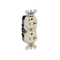 Leviton 8300-HW is a duplex receptacle designed for heavy-duty applications. This model is rated for 20 Amps and 125 Volts, meeting hospital-grade standards. It features a compact slim body design suitable for various environments, including healthcare facilities and commercial applications.