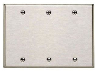 The Leviton 84133-40 is a blank wallplate designed for three gang applications. It is made from high-quality stainless steel. This oversized wallplate is ideal for both residential and commercial usage, providing durability and a sleek finish.
