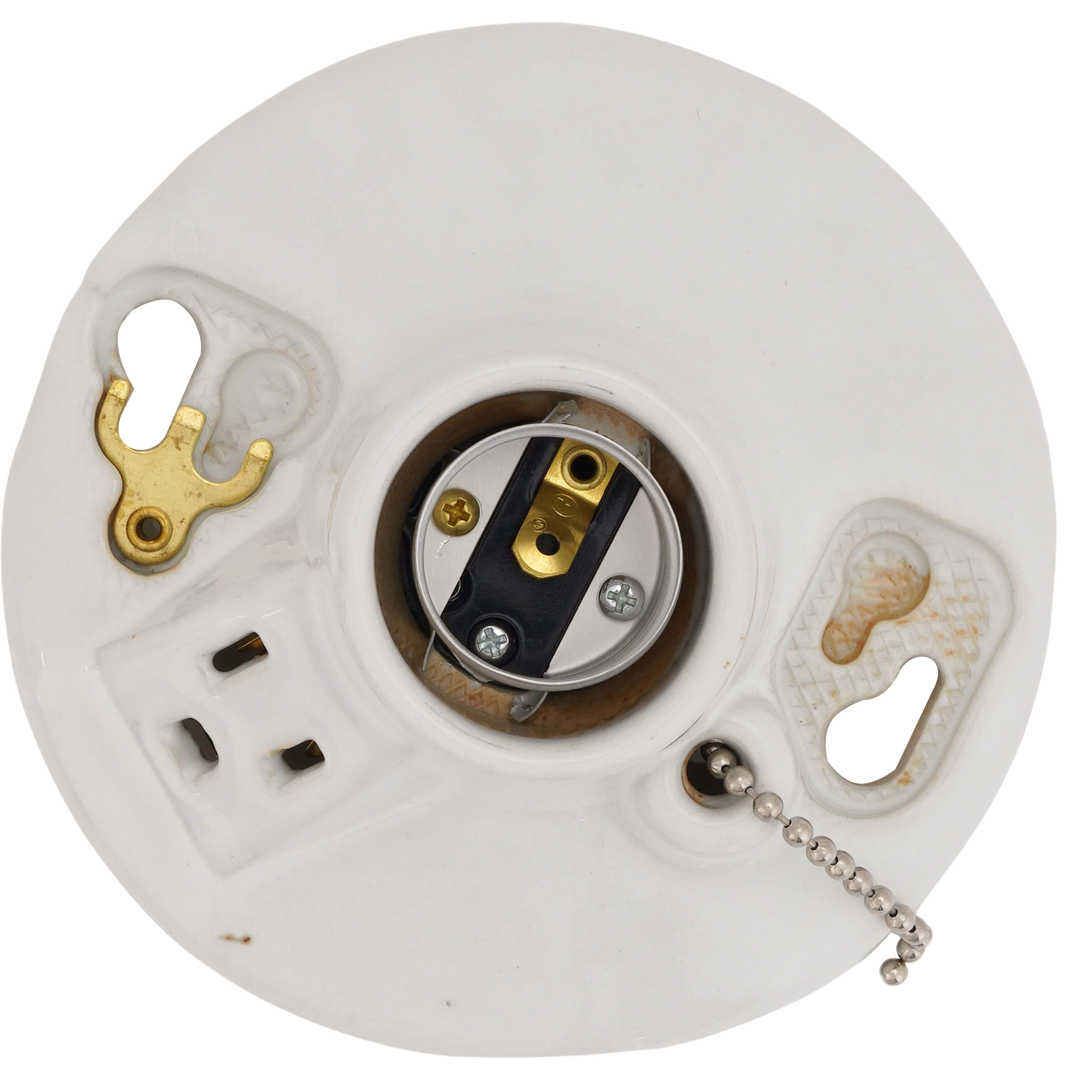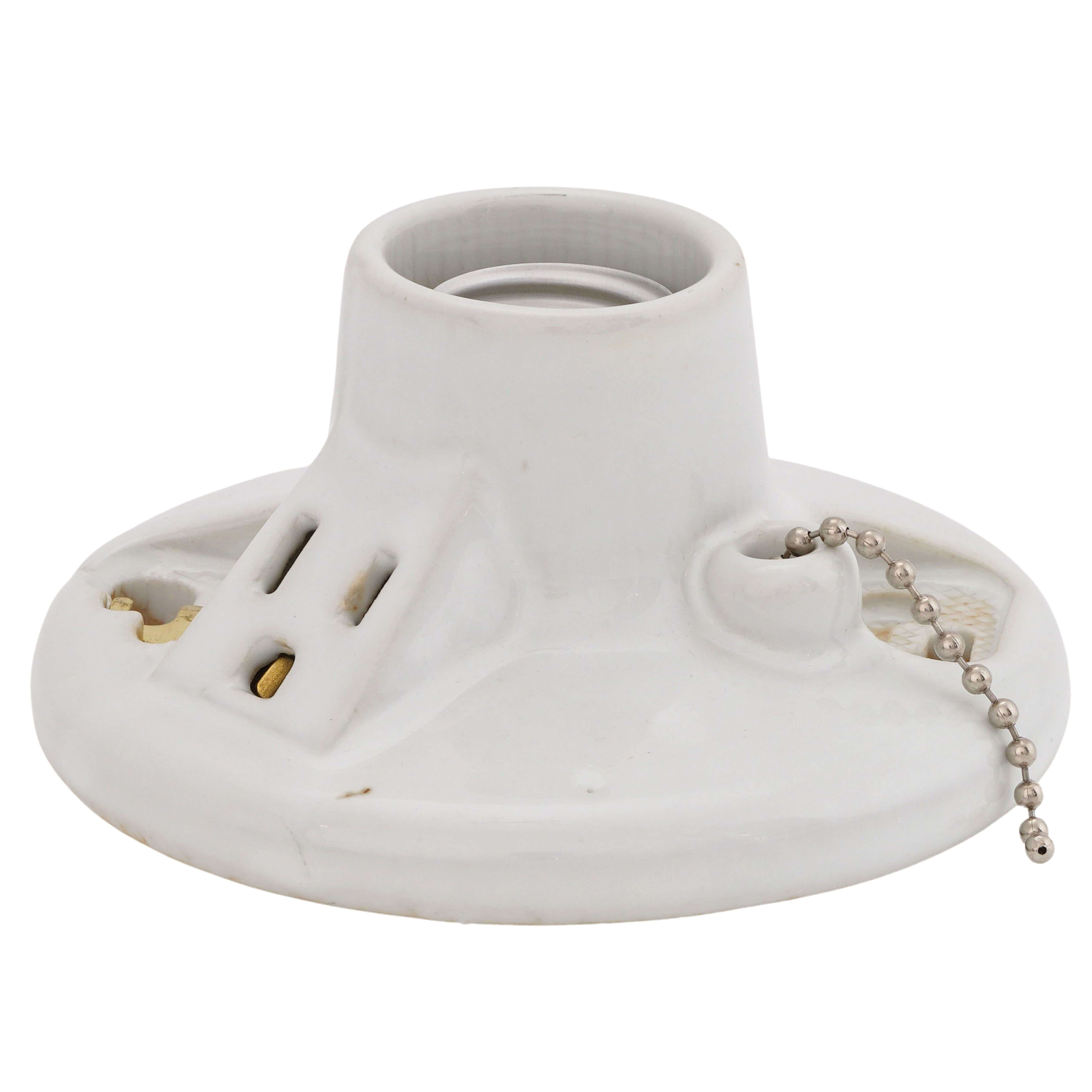 The Leviton 9726-C Lampholder is suitable for use with incandescent lamps. This one-piece, pull-chain lampholder handles up to six hundred sixty watts and operates at one hundred twenty-five volts. Equipped with a top wired connection and an aluminum screw shell, it offers durability and ease of installation. Ideal for any setting where reliable lighting is needed.