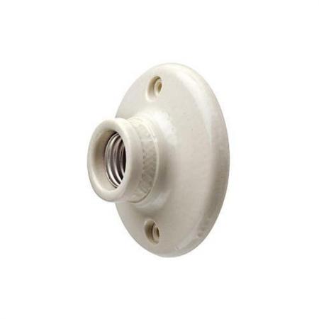 Leviton 9874 is a twist-lock lampholder with a capacity of six hundred sixty watts, designed for use with incandescent lamps at a voltage rating of two hundred fifty volts. This one-piece, keyless lampholder is made from durable porcelain and features a medium base. It is ideal for commercial applications.