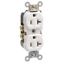 The Leviton BR20-W is a 20 Amp, 125 Volt, NEMA 5-20R, Narrow Body Duplex Receptacle. This product is designed for commercial settings where durable and reliable electrical connections are needed. Suitable for both back and side wiring, it provides flexibility during installation.