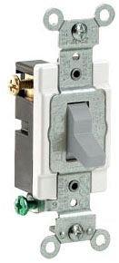 The Leviton CS315-2GY is a three-way toggle switch designed for commercial applications. This switch operates at 15 amps and supports voltage ratings of 120/277 volts, making it suitable for various settings including government buildings and health care facilities.