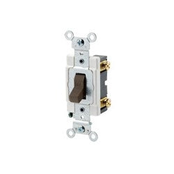 Leviton, CSB1-20W, is a toggle switch designed for commercial use. This switch operates at 20 amps and can accommodate a voltage range of 120 to 277 volts. It is ideal for various applications including government and educational facilities, malls, and hospitals.