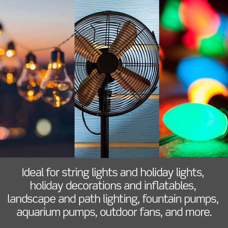 This product features built-in light sensing for automated operation, enabling easy management of outdoor lights at dusk and dawn.