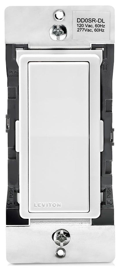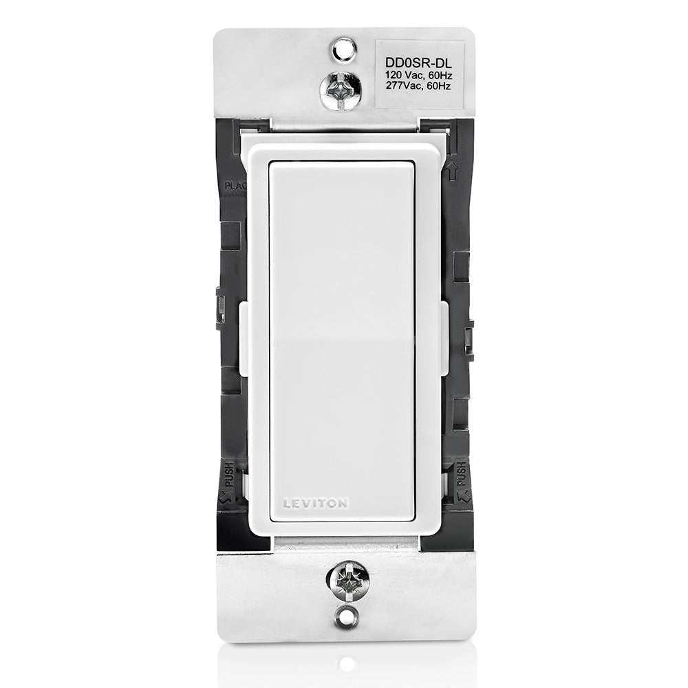 The Leviton DD0SR-DLZ Decora Smart Switch Companion is designed for multi-location switching applications. It operates at 120 to 277 Volts AC and uses a frequency of sixty Hertz. This device is compatible with Decora Digital and Decora Smart switches, allowing control of lighting or fans from multiple locations.