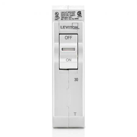 The Leviton LB130-T is a standard branch circuit breaker designed for use in residential and commercial applications. This circuit breaker operates at 120/240 VAC with a trip rating of 30 amps and a 10 kA interrupt capacity. The thermal magnetic trip design ensures reliable operation, providing protection against overloads and short circuits.