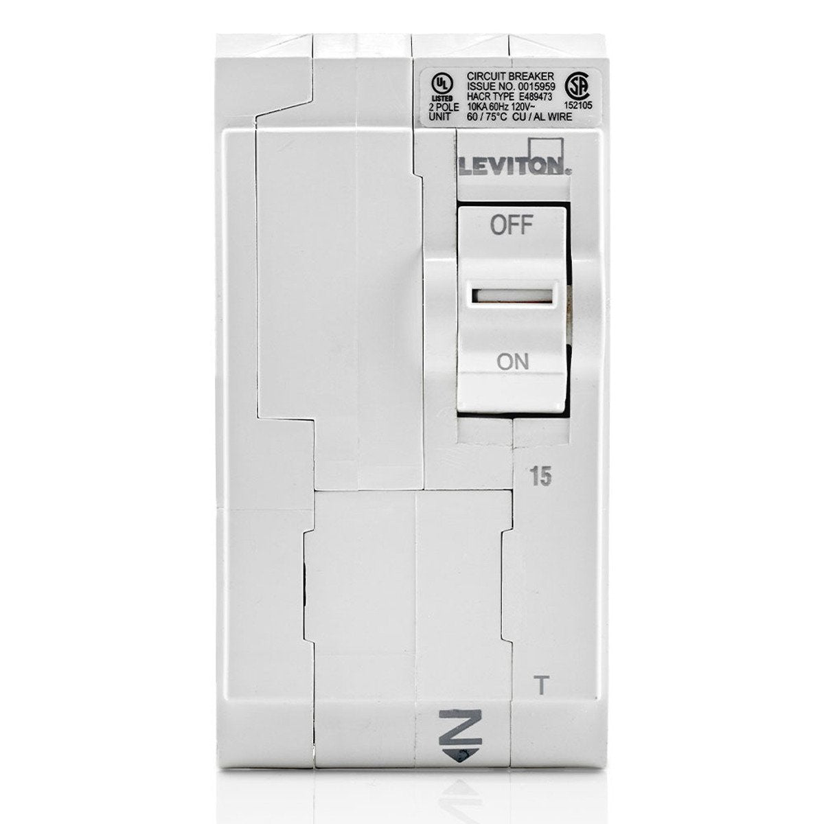 Leviton LB215-T is a standard circuit breaker rated for 120/240 VAC and 15 A, featuring a thermal magnetic trip and designed for plug-on installation. This breaker is engineered to provide reliable protection for electrical circuits