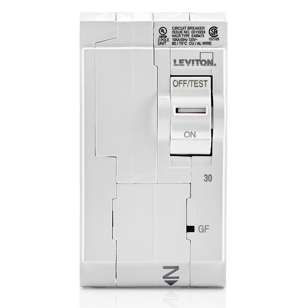 The Leviton LB230-G is a 30 Amp, 2-Pole Ground Fault Circuit Interrupter (GFCI) breaker designed for use in both 120 and 240 Volt applications. This product is designed to protect against electrical shock and reduce the risk of electrical fires. It features a hydraulic magnetic trip mechanism, ensuring reliable operation within specified conditions.