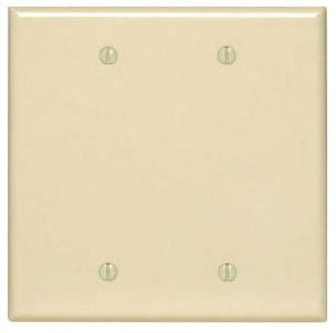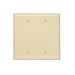 Leviton PJ23-I is a 2-gang no blank wallplate designed for standard electrical installations. This product is suitable for various applications in residential and commercial settings. It features a midway size that fits most outlet boxes and provides a reliable solution for concealing wiring and openings.