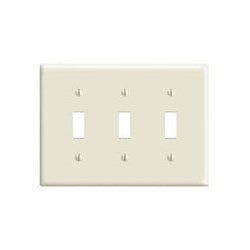 This wallplate is ideal for use with three toggle switches. Its traditional design has been proven effective for various applications.