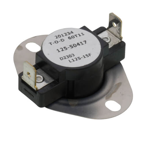 The Reznor 50417 Limit Control L-125 6/T11 is built for various industrial applications. This limit switch is designed to handle substantial electrical loads up to 15 amperes. It operates on a 120/240VAC power supply and incorporates a 1/2-inch NPT conduit connection for secure electrical connections. Its rugged construction ensures enhanced durability and protection against harsh environments.