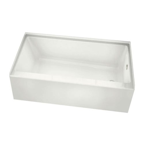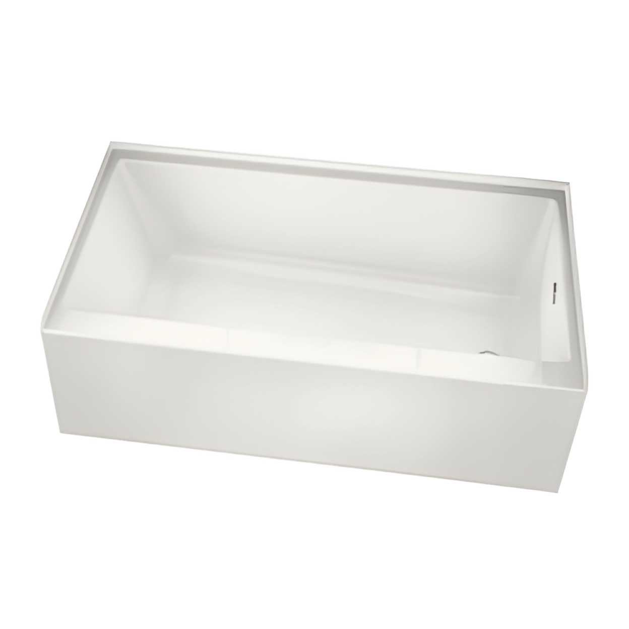 The Maax Rubix soaking bathtub, MPN 105705-R-000-001, features a spacious design for comfortable soaking. It measures sixty inches in length, thirty-two inches in width, and eighteen inches in depth, ensuring ample room for relaxation. This bathtub is made of durable acrylic, known for its heat retention properties, making it ideal for a long and soothing soak.