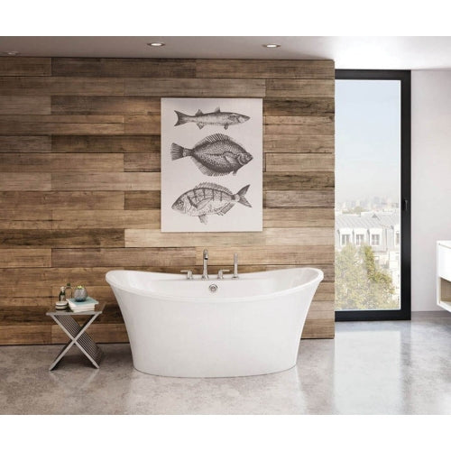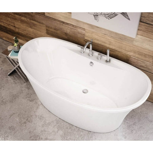 The Maax Ariosa soaking bathtub, model 106267-000-001, is designed for residential use. This acrylic freestanding bathtub features a center drain and provides a comfortable space for relaxation. With dimensions of sixty-six inches in length, thirty-six inches in width, and twenty-eight inches in height, it accommodates single bathers. The tub’s capacity is fifty-six gallons, making it suitable for extended soaks.