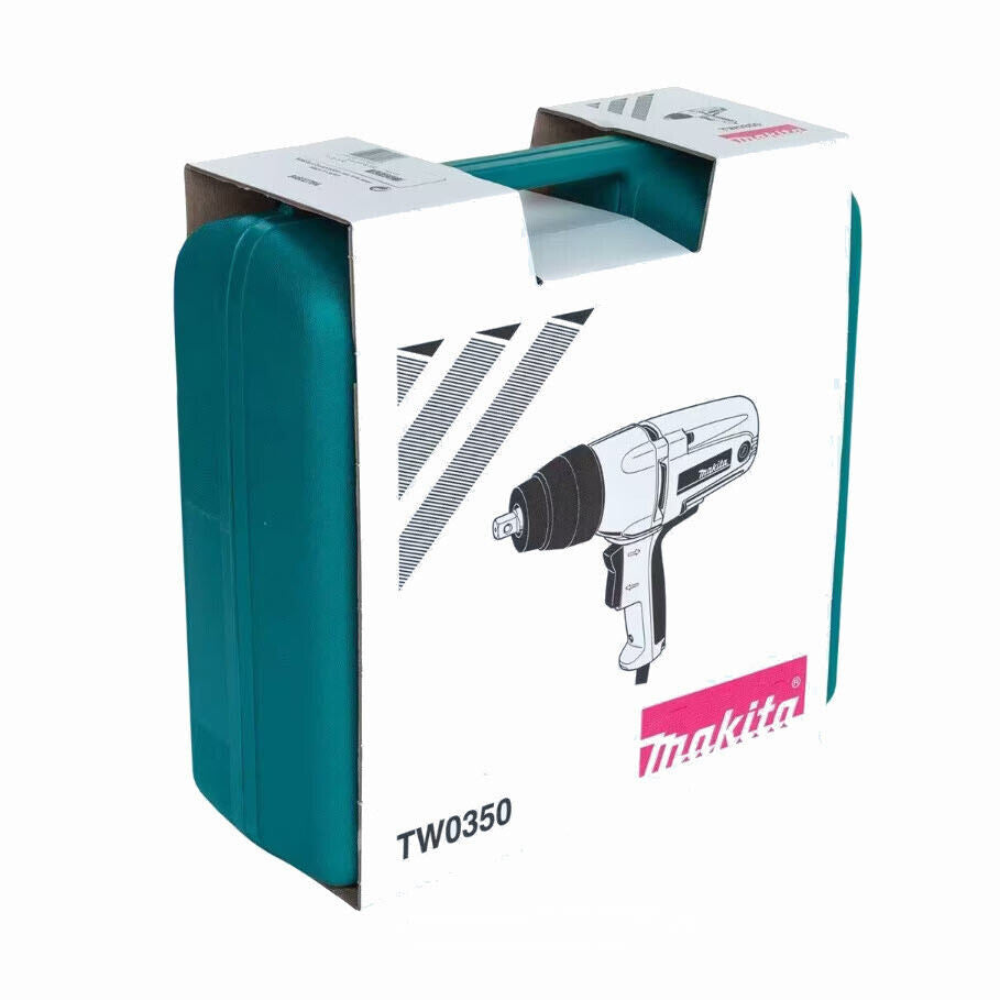 The Makita TW0350 is a 1/2 inch drive impact wrench designed for heavy-duty applications. This tool delivers 2,000 impacts per minute and produces a maximum torque of 258 feet-pounds, making it suitable for demanding tasks. The ergonomic grip helps improve control and comfort during use, while the impact-resistant gear case provides durability.
