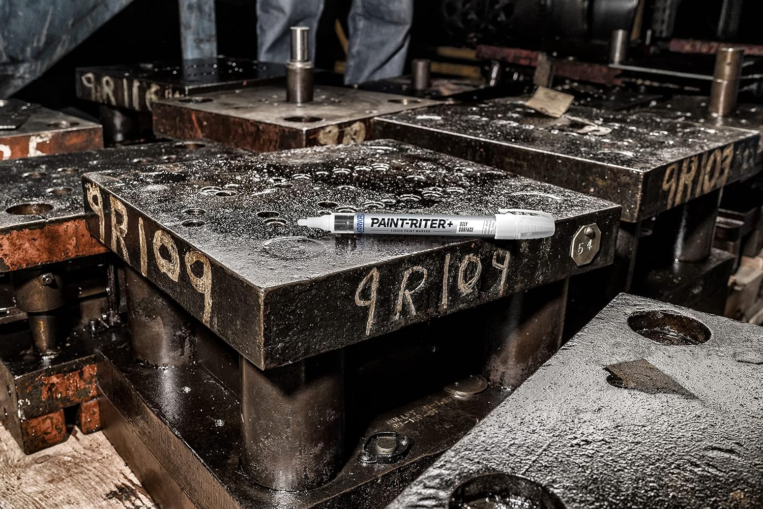 The Markal 96965 Paint-Riter+ Oily Surface Liquid Paint Marker is designed for superior performance on oily and greasy surfaces. The 1/8-inch bullet tip ensures precise marking, and the blue color provides high visibility. Ideal for various industrial applications. Made in the USA.