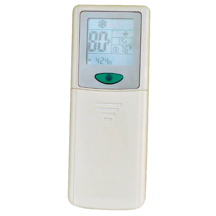This remote provides essential controls for mini-split systems, including a clock display and a 24-hour on/off timer for energy savings.