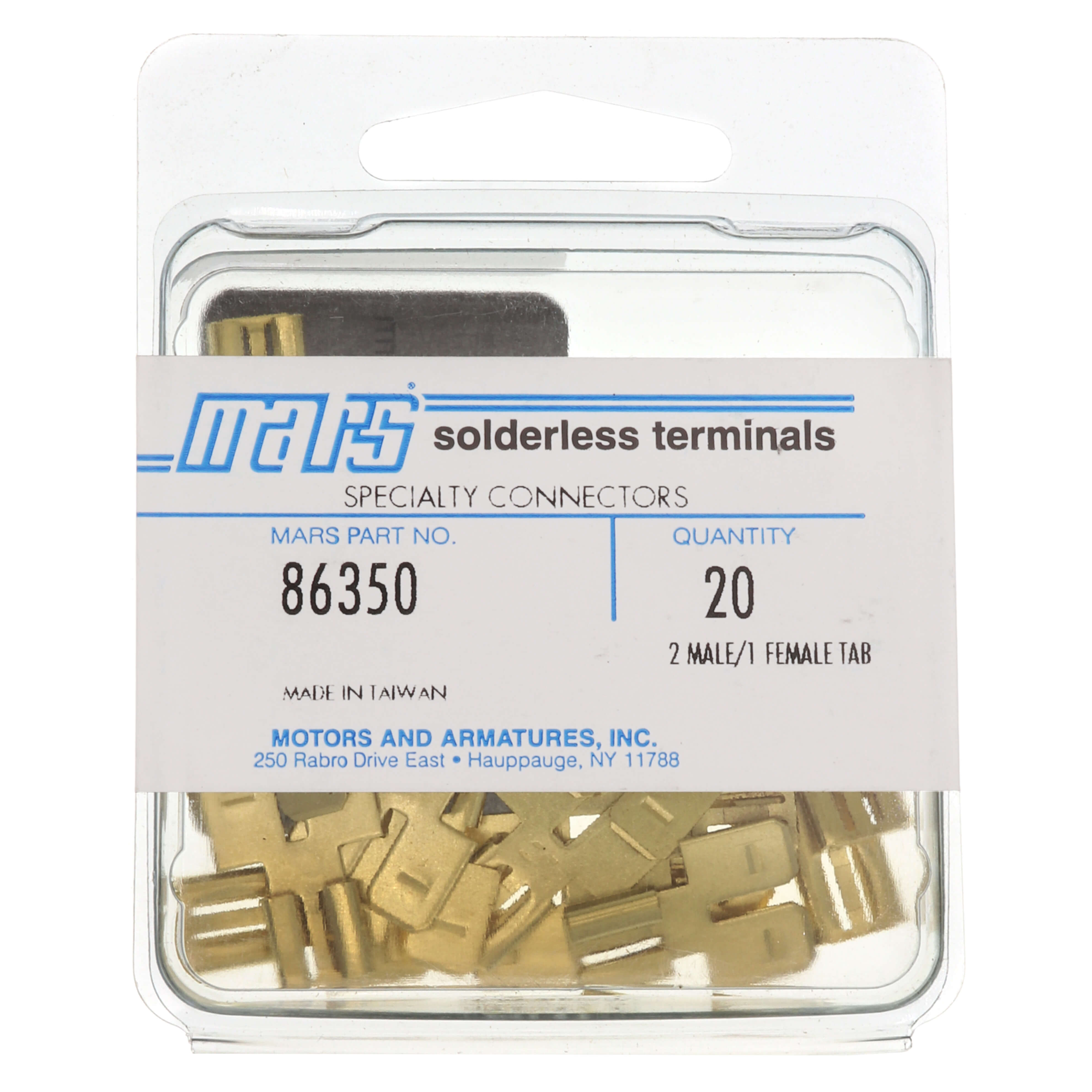 The MARS 86350 is a non-insulated tab adapter designed for electrical connections. This adapter features two male connectors and one female connector. It provides reliable connectivity for various electrical applications. Ideal for HVAC and electrical work, the MARS 86350 ensures stable connections in tight spaces.