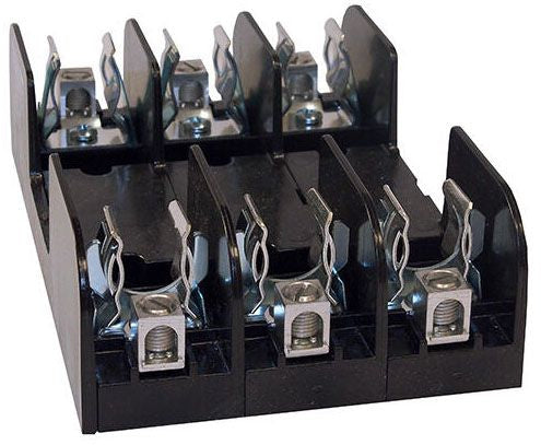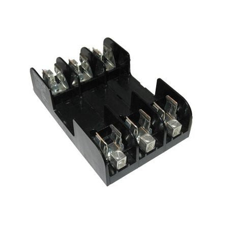 The Mersen 60608R is a fuse block designed for applications needing reliable power distribution. This model accommodates voltage ratings of 600 volts AC and DC, with a current rating of sixty amps across three poles.
