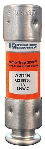 The Mersen A2D1R is a Class RK1 time-delay fuse designed to protect electrical circuits. Its compact design allows for use in a variety of applications including motors, safety switches, and transformers. The fuse operates at a voltage of two hundred fifty volts AC/DC and has a one ampere current rating.