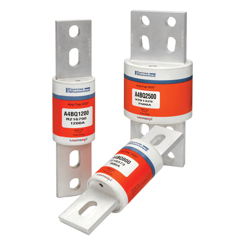 The Mersen A4BQ1200 is a class L time delay fuse rated for 1200 amperes and 600 volts. This fuse is designed for mains feeders, large motors, and lighting and heating applications. It provides reliable protection against overloads and short circuits.