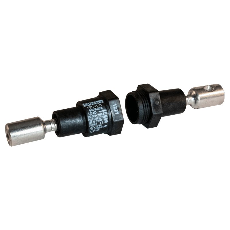 The Mersen FEC-11-11 is a fuse block designed for use with 600 Volt AC and DC applications. This fuseholder is suitable for Class CC fuses and is rated for 30 Amps. It serves as a reliable component for electrical circuits requiring a single pole connection. This fuse block is easy to install, with crimp connections that ensure secure contact.