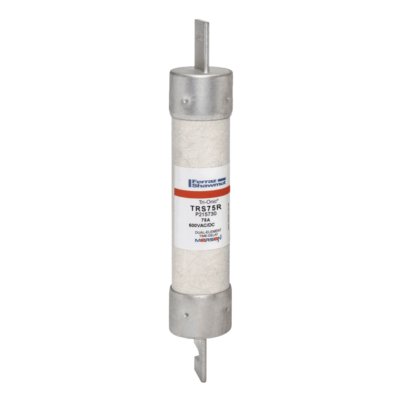 The Mersen TRS75R is a 75 Amp, 600 Volt Class RK5 time-delay fuse. This fuse is designed to protect electrical circuits from overcurrent conditions. It features a reliable blade connection and is suitable for use in various applications.